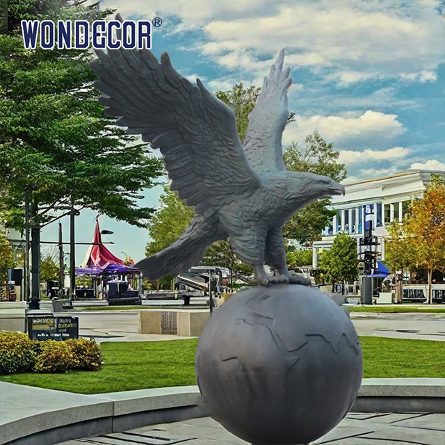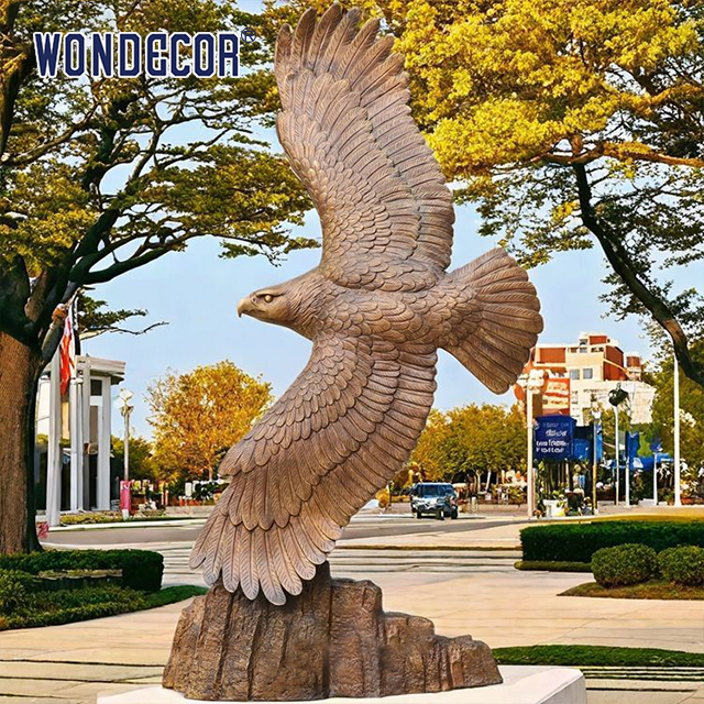 Kartal heykelleri park meydanları ve kurumsal girişler için dekoratif öğeler olarak hizmet eder.Dinamik modelleme yoluyla statik ortamların tekdüzeliğini kırarak alanın sanatsal atmosferini artırmakBoyutu, küçük süslemelerden büyük işaretlere kadar sahneye göre özelleştirilebilir.