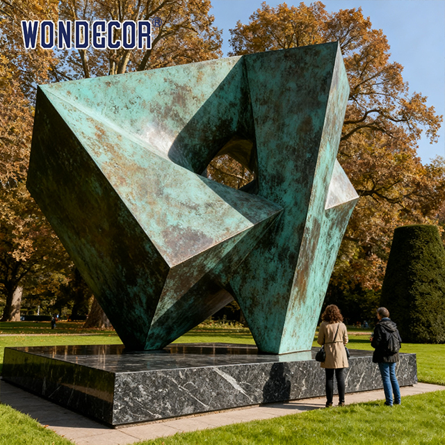 - Eşsiz Sanatsal Onay:Modern soyut geometrik şekil geleneksel figüratif kısıtlamaları kırıyor.Düzensiz geometrik kesimler ve dağılmış yapısal kombinasyonlar sayesinde güçlü görsel etki yaratır.Bronzun retro dokusu soyut geometrinin öncü anlayışı ile harika bir şekilde bütünleşir, modern dış mekanlara uyum sağlarken bölgesel bir simge olarak hizmet eder.